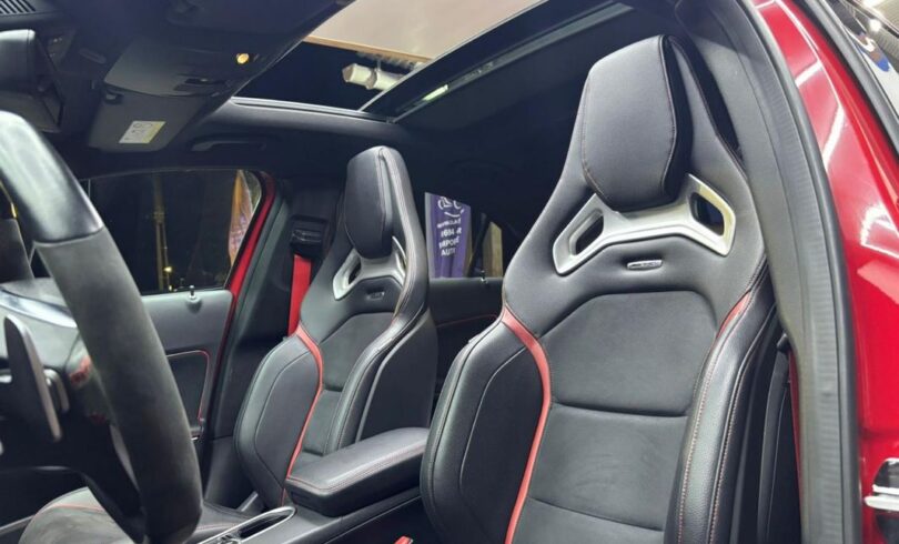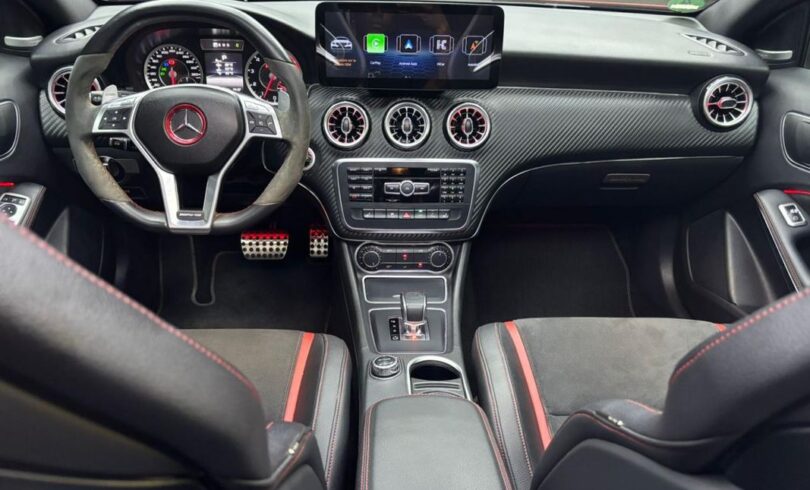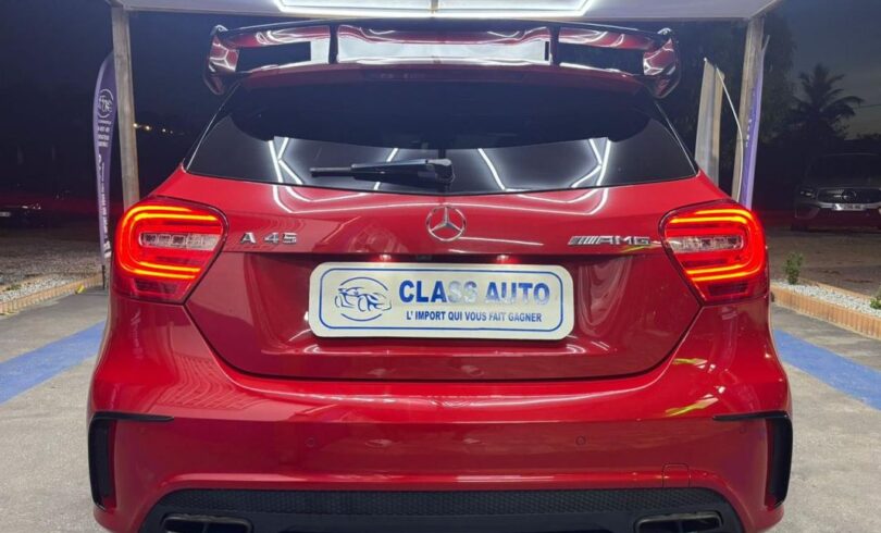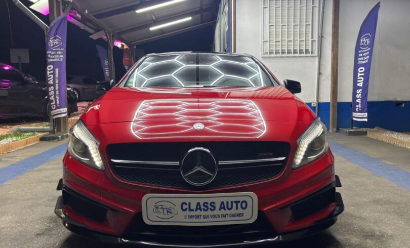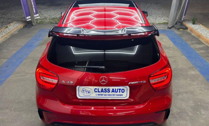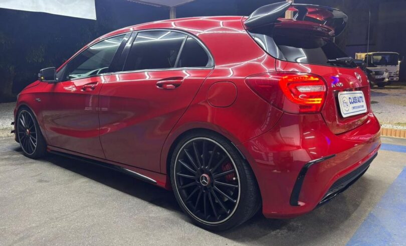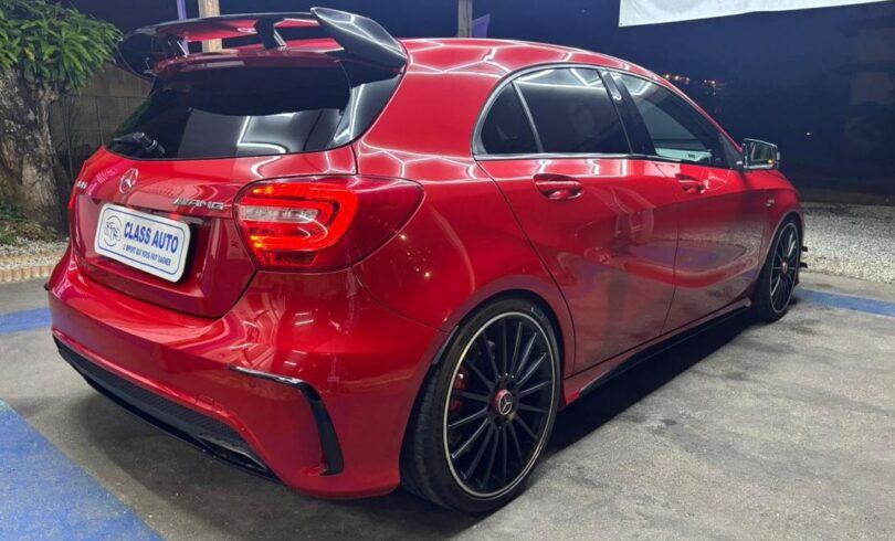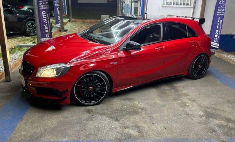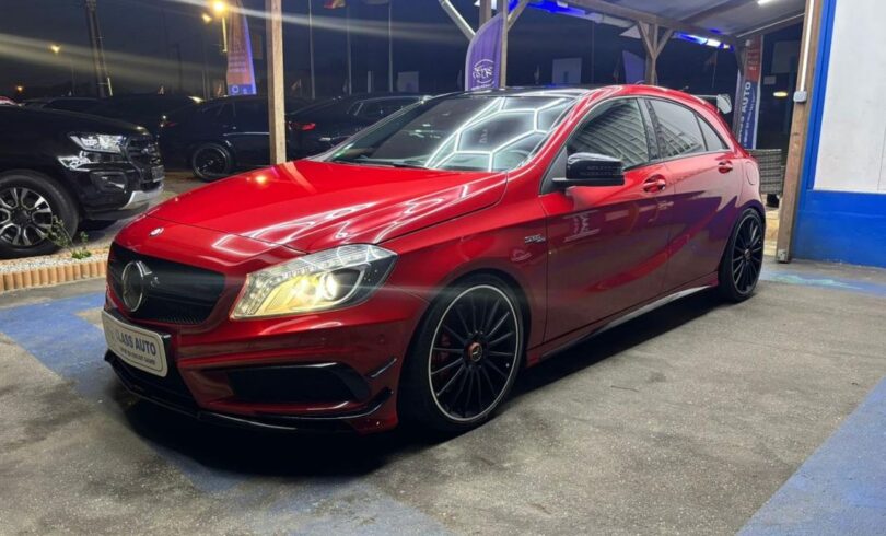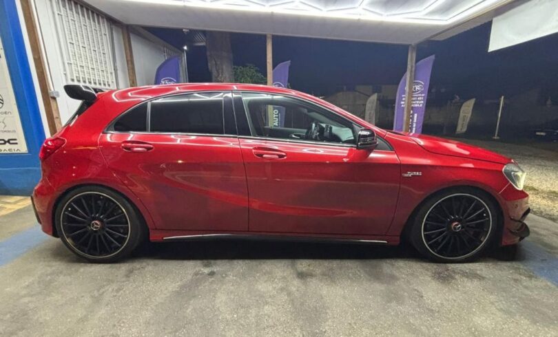 MERCEDES CLASSE A A 45 – BV Speedshift DCT AMG BERLINE – BM 176 AMG 4-Matic PHASE 1, break, rouge clair, 24 cv, 5 portes, première mise en circulation le 02/01/2014, garantie : 6 mois.